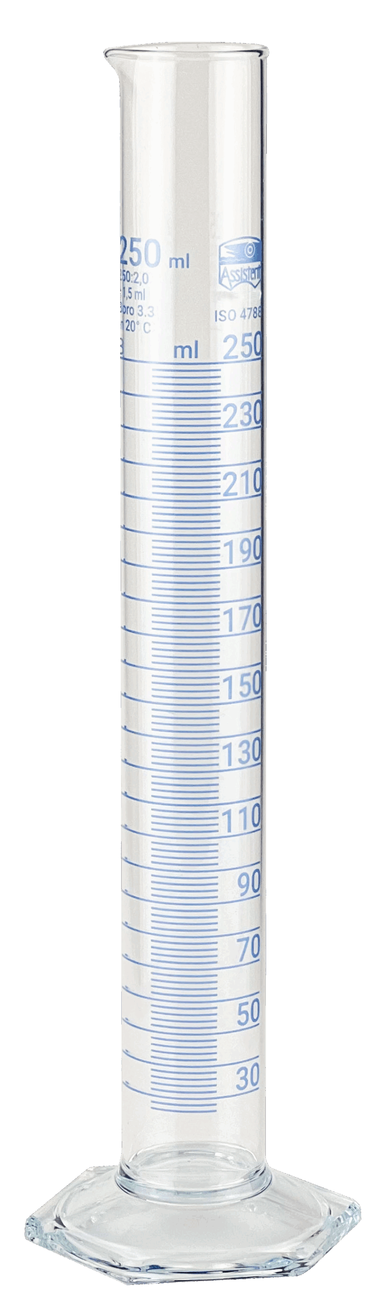 | Variante(n): | Messzylinder, hohe Form, Borosilikatglas 3.3, Sechskantfuß, Inhalt 10 ml, Inhalt 25 ml, Inhalt 50 ml, Inhalt 100 ml, Inhalt 250 ml, Inhalt 500 ml, Inhalt 1000 ml, Inhalt 2000 ml |